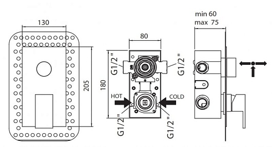 - Оснащение: скрытая монтажная часть, дивертор поворотный