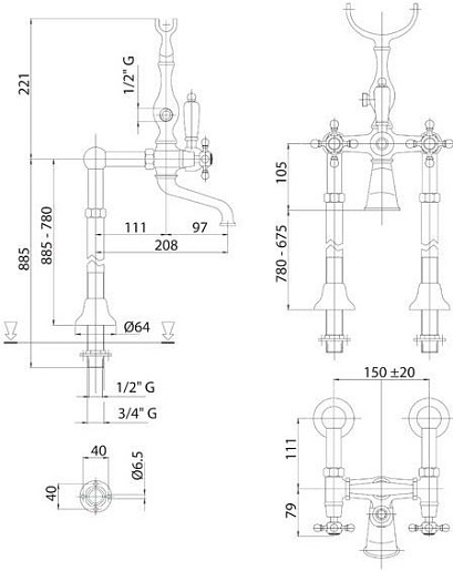 Cezares Смеситель GOLF-VDPS-02 напольный для ванны