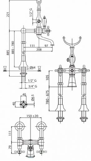 Cezares Смеситель LORD-VDP-01-Bi напольный для ванны