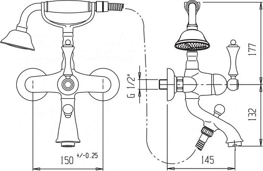 - Душевой шланг, душевая лейка, эксцентрики, аэратор, держатель для душевой лейки, дивертор