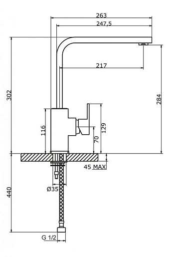 Высота излива, мм: