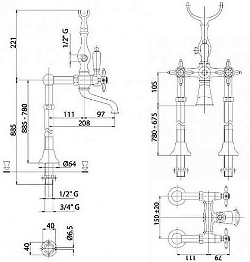 Cezares Смеситель NOSTALGIA-VDPS-02 для ванны