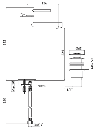 Высота излива, мм: