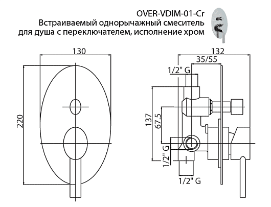 Cezares Смеситель OVER-VDIM-01-Cr для душа