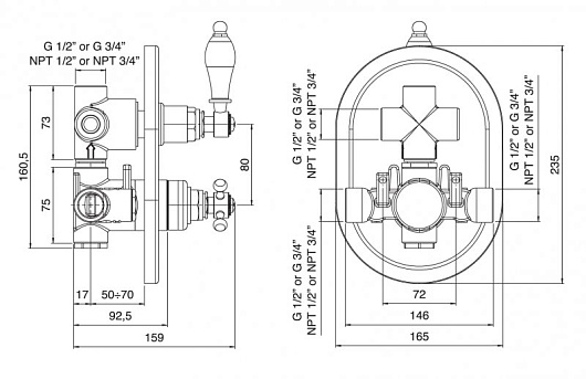 Cezares Смеситель термостатический MARGOT-VDIM2-T-02-Bi для душа