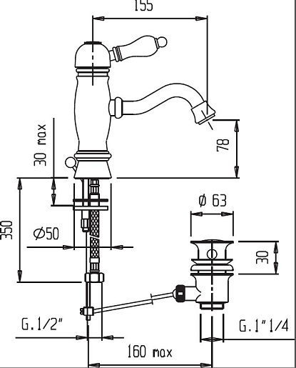 Cezares Смеситель VENEZIA-LSM1-01-Bi для раковины