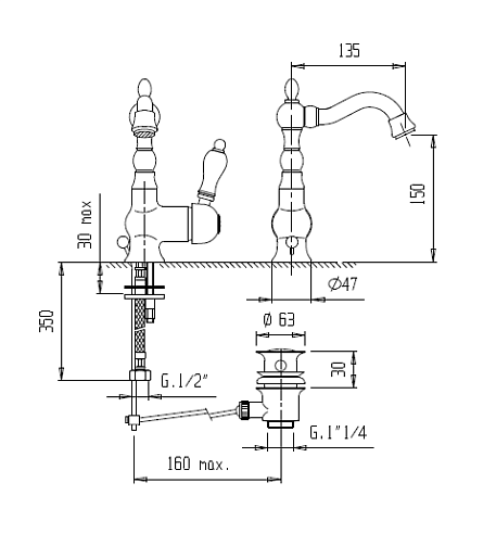 Cezares Смеситель VENEZIA-LSM2-02-Bi для раковины
