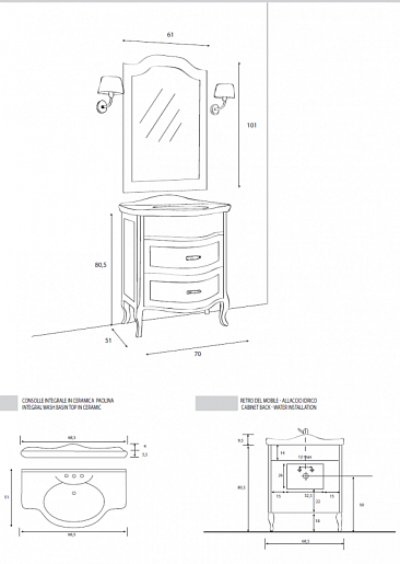 Cezares Тумба с раковиной LAURA 70 Bianco Laccato Lucido, раковина Paolina