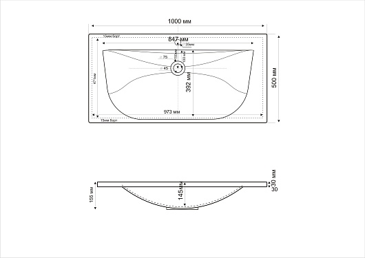 - Раковина из литьевого мрамора, 1000x500x150, CEZ1000/500-LV-MR