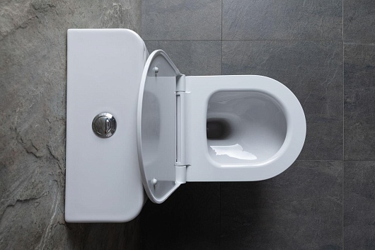 - Кнопка смыва встроена в бачок.