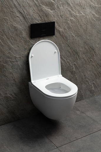 - Система смыва и форма чаши полностью исключают вероятность выплескивания воды, обеспечивая высокий уровень комфорта и удобства в использовании.