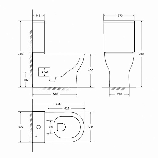Габариты чаши унитаза (ШхВхД): 360х400х625 мм.