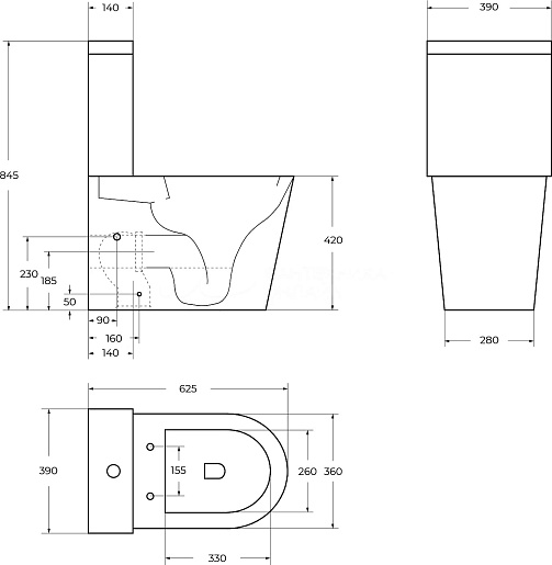 Чаша без внутреннего ободка полностью омывается потоком воды