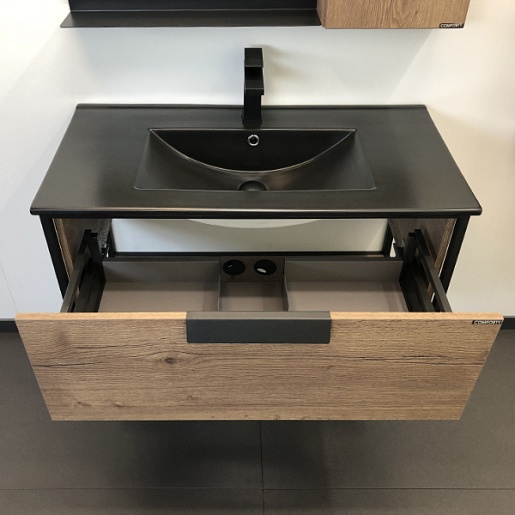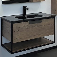 Подвесная тумба с черной раковиной Comforty Бонн 90 (Comforty) дуб темный - арт. 00-00001937CF.