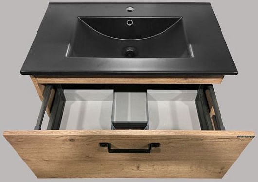 - Черная раковина Comforty 75E с отверстием для смесителя.