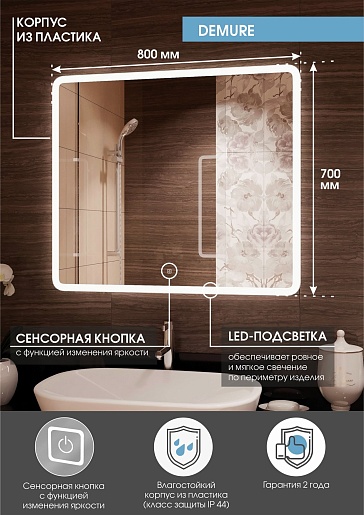 Continent Зеркало Demure Led 800x700
