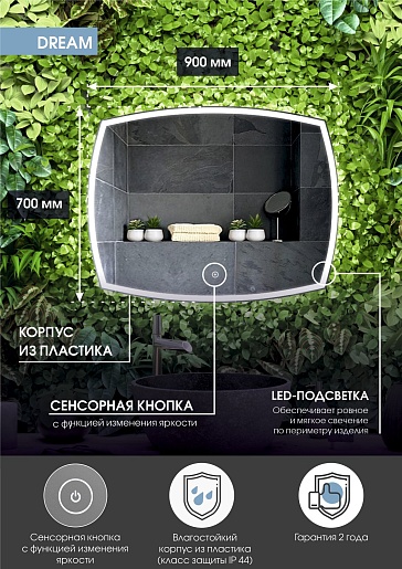 Continent Зеркало Dream Led 900x700