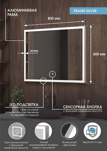 Зеркало Continent Frame Silver Led 800x600 - арт. ЗЛП1019.