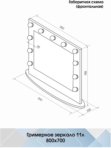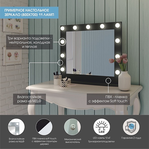 Зеркало гримерное Continent 800x700 черное - арт. ЗГП43.