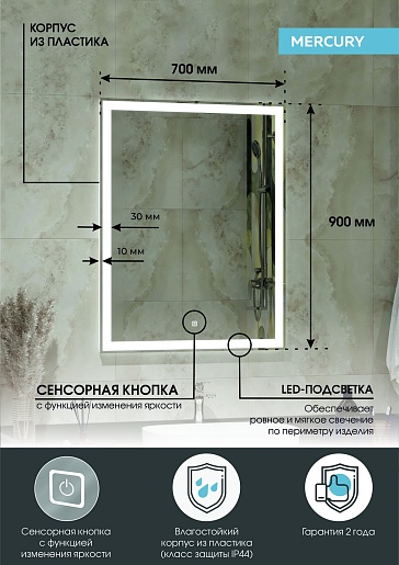 Зеркало Continent Mercury Standart Led 700x900 - арт. ЗЛП506.
