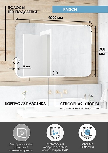 Continent Зеркало Raison Led 1000x700
