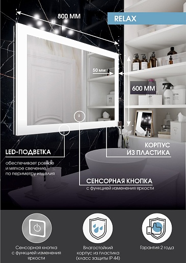 Зеркало Continent Relax Led 800x600 - арт. ЗЛП32.