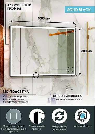 Зеркало Continent Solid Black Led 1000x800 - арт. ЗЛП1607.