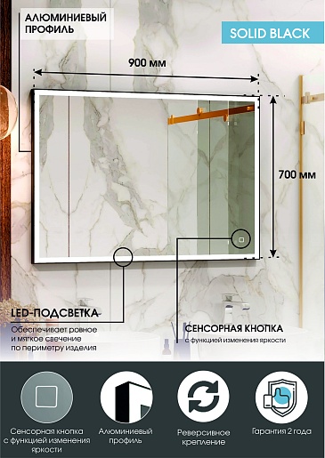 Зеркало Continent Solid Black Led 900x700 - арт. ЗЛП1617.
