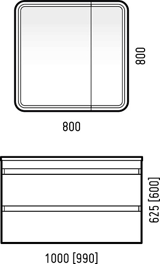В комплекте: тумба, раковина, зеркальный шкаф, комплект креплений.