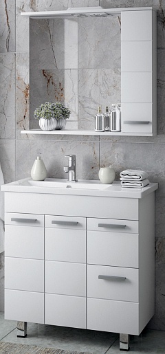Тумба напольная Денвер 80: распашные фасады, ящики, доводчики, ножки.