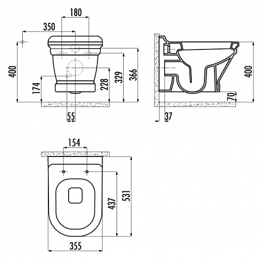 Creavit Унитаз подвесной Antik AN320.F0100 капучино