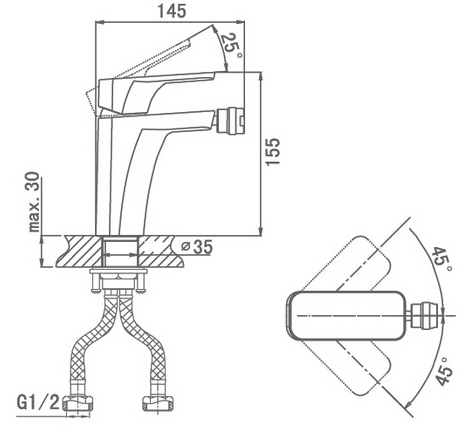 - гибкая подводка G1/2"