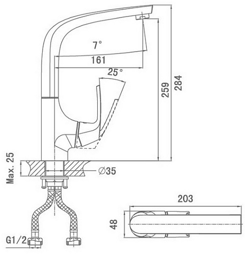 - гибкая подводка G1/2"