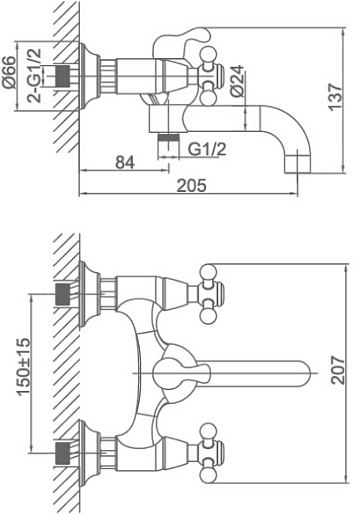 - настенный монтаж на два отверстия