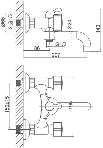 - настенный монтаж на два отверстия