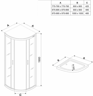 De Aqua Душевой уголок R100100OP-W 100х100 прозрачный