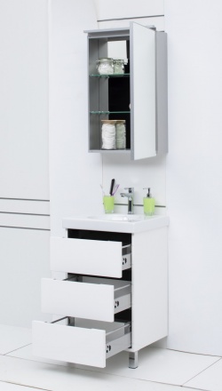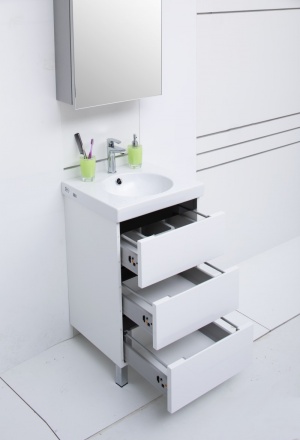 - Тумба под раковину De Aqua Ариетта 50 (184508) с тремя выдвижными фасадами.