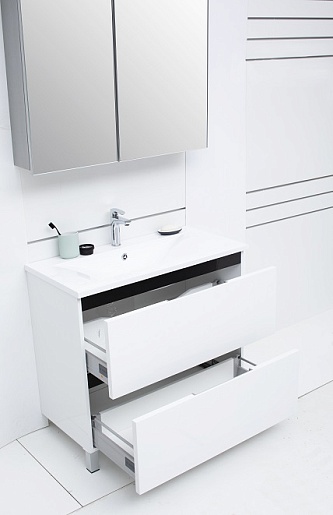 - Тумба под раковину De Aqua Ариетта 50 (185510) с двумя выдвижными фасадами.