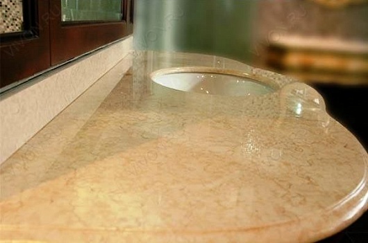 - Столешница Париж 135: 1360х550х120 мм., литьевой мрамор, цвет Сrema Marfil, бортик против брызг.