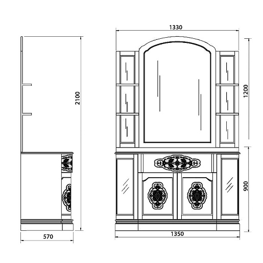 - Зеркало Париж 135: 1350х60х1200 мм., полка - 4 шт.