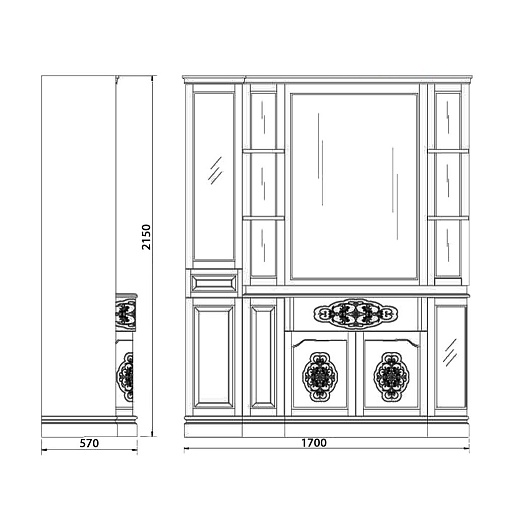 - Тумба приставная Париж 170: 250х540х820 мм., распашная дверца - 1 шт., ручка - 1 шт.