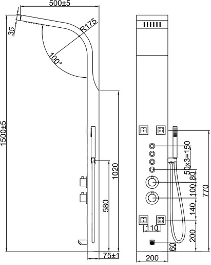 Denberg Душевая панель LT-202 с термостатом светлое дерево