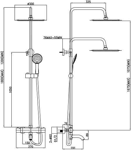 - Переключение на верхний душ при повороте излива на 90 градусов.