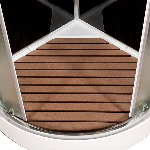 100% акриловый поддон с дренажными отводами высотой 15 см, усиленный металлическим каркасом с вставкой из антибактериального полимера.