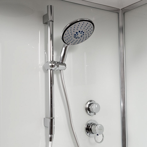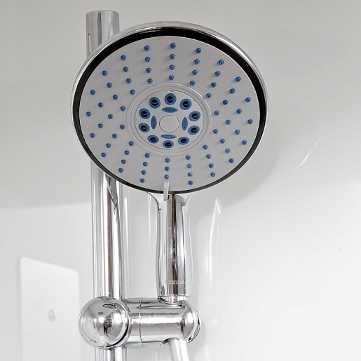 - Душевая штанга с регулировкой лейки по высоте и ручная лейка с силиконовыми форсунками с функцией переключения режимов .