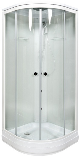 - Акриловый поддон со съемным экраном выстой 20 см, с дренажными отводами, усиленный оцинкованным металлическим каркасом.