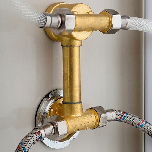 - Латунный смеситель с керамическими картриджами и резьбовыми соединениями.