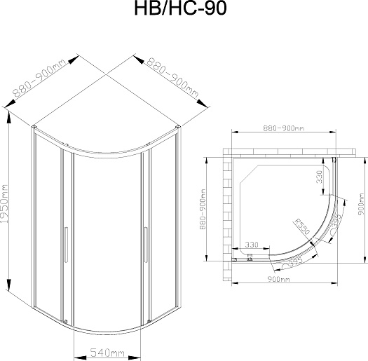Душевой уголок Deto HB 90 Black - арт. HB90.