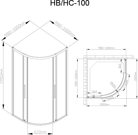 DTO (Deto) Душевой уголок HC 100 Chrome