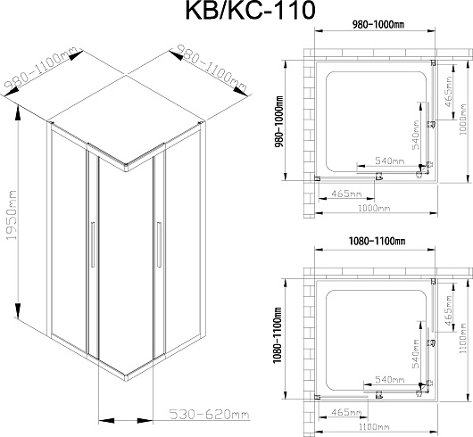 Душевой уголок Deto KС 100-110 Chrome - арт. KC100.